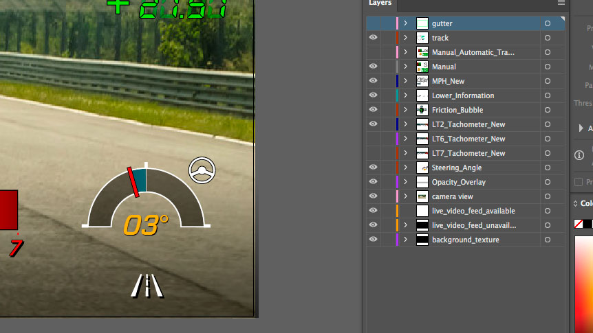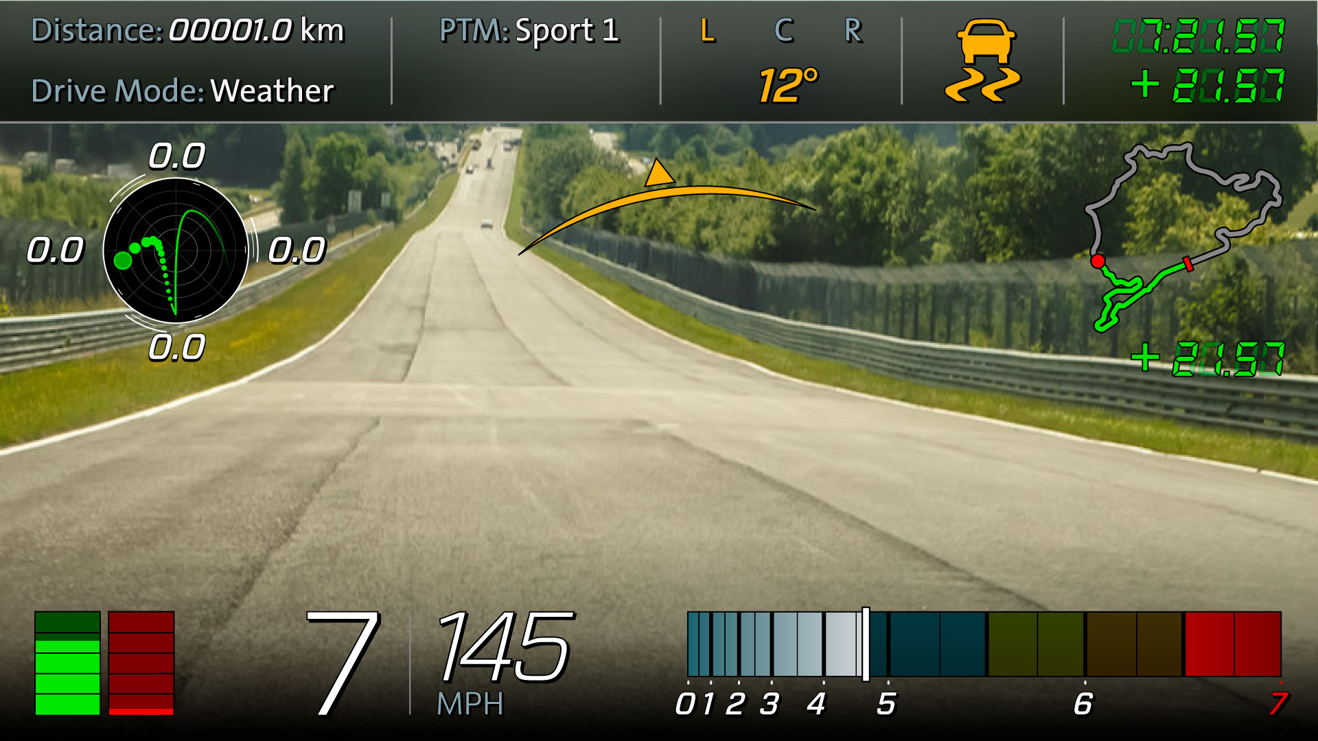 Response was nothing short of spectacular at the unveiling and I feel very grateful and proud to have been able to contribute to this project. I was charged with the graphic design and implementation of the Performance Data Recorder app. The app leverages the Cosworth (supplier) toolbox in conjunction with many ECU signals and the camera feed to record the vehicle metrics while on the track or the daily commute. The app contains many widgets that record acceleration, braking, speed, time, distance, G-forces, and different performance modes. Clean and concise graphics depict all of these widgets.
