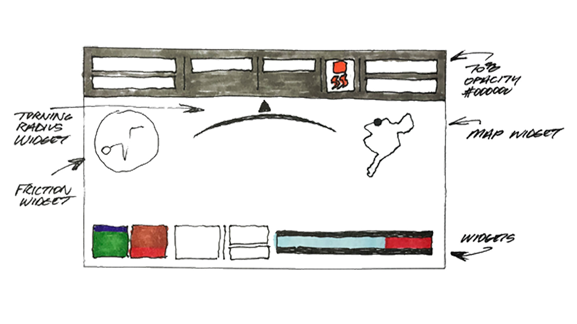 This is the main stage that houses all of the apps that the user sees while strapped into the cockpit. This was another portion of the system that I was in charge of, making sure each button state was precisely built out pixel perfect, layerd out in the stacking order, correctly named smart objects embedded in the psd's, released on time, implemented into the software, and validated in a timely manner.