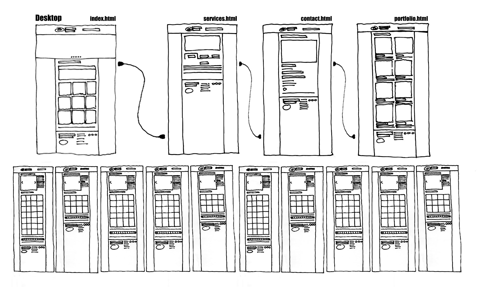 Here the lower pagination area links all of the portfolio screens together.