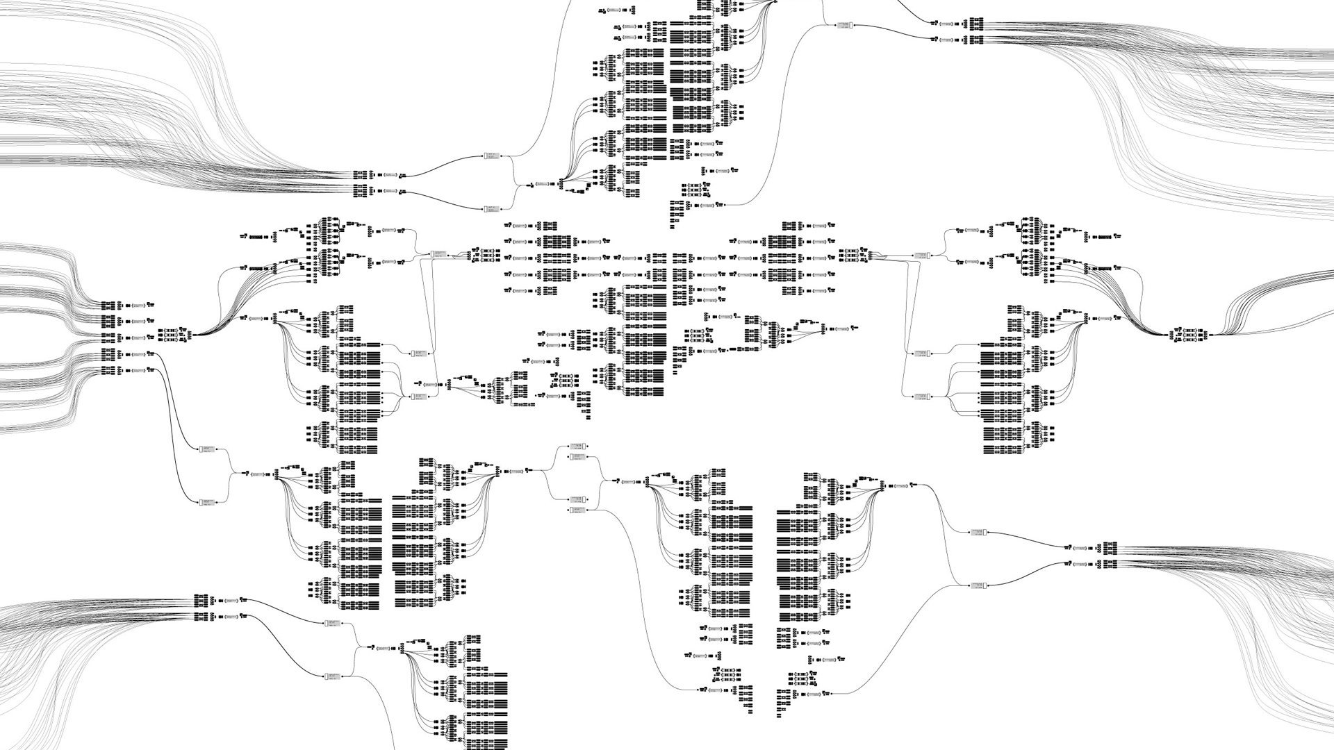 Here's a screen-shot of the motion sequence. I'm looking for depth, shapes, lines, and how they all interact with each other to form the composition.